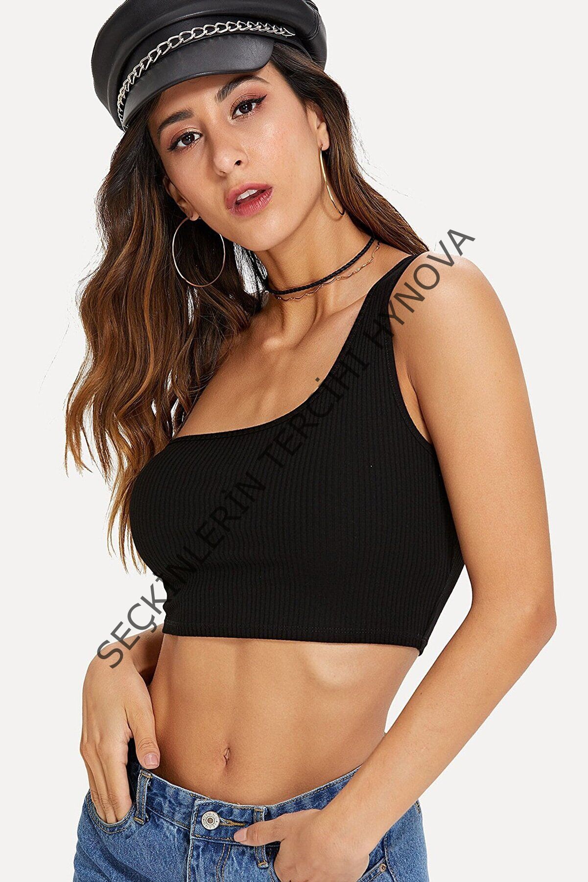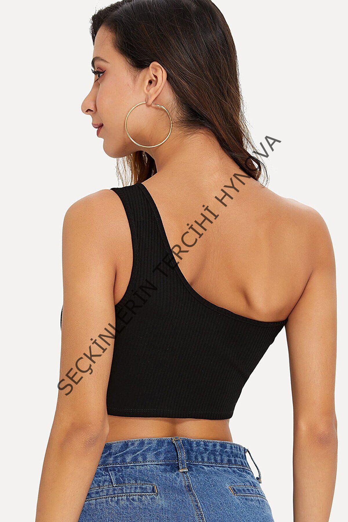 Kadın Siyah Tek Omuz Crop Büstiyer – Modern ve Şık Tasarım