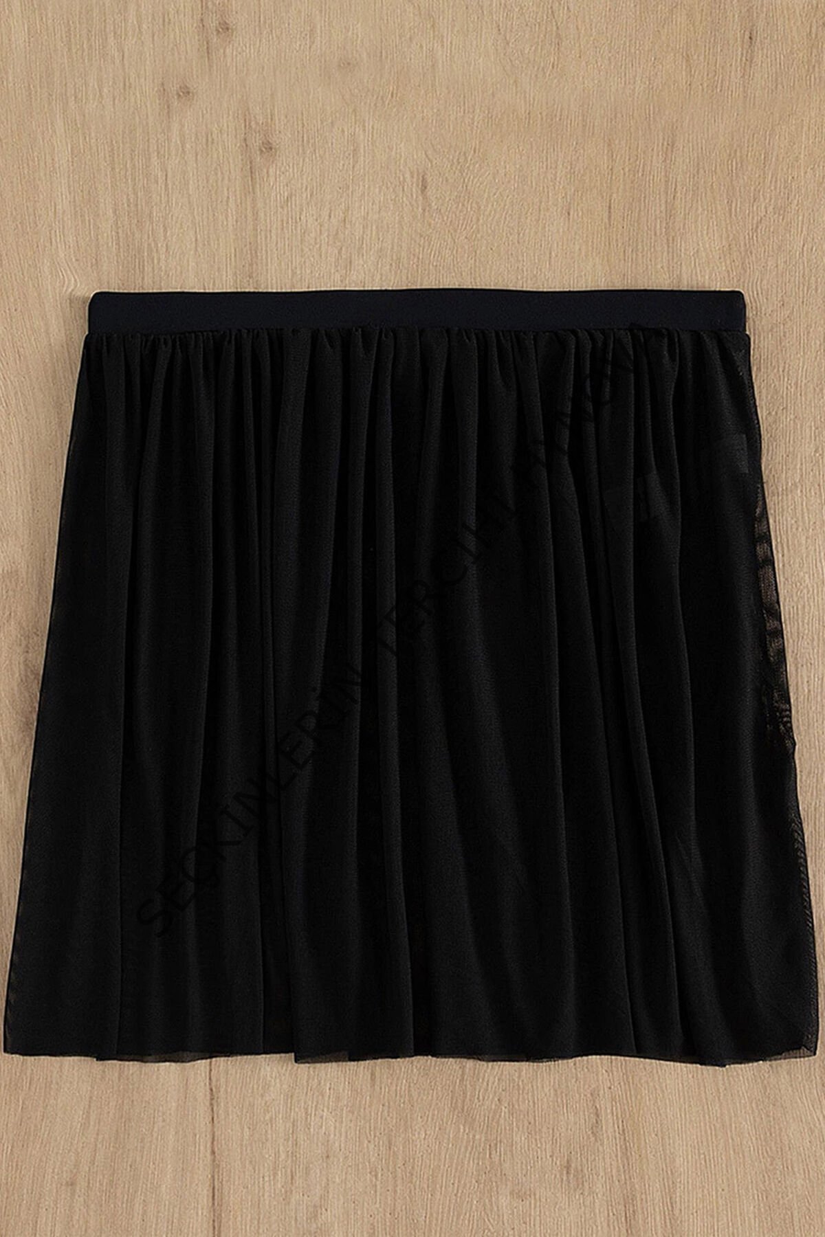 Kadın Siyah Tül Beli Lastikli Etek Görünümlü Pareo – Modern ve Şık Tasarım