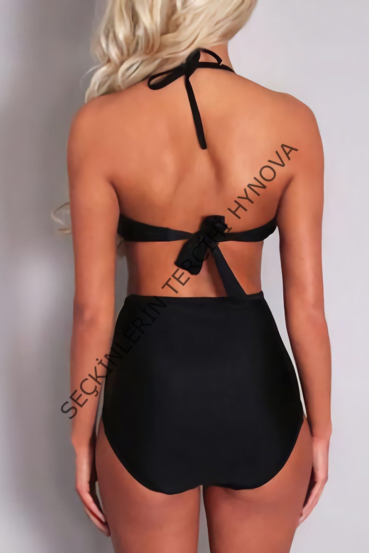 Kadın Siyah Tül Işlemeli Yüksek Bel Sütyen Külot Takımı – Modern, Konforlu ve Günlük Kombinlere Uygun