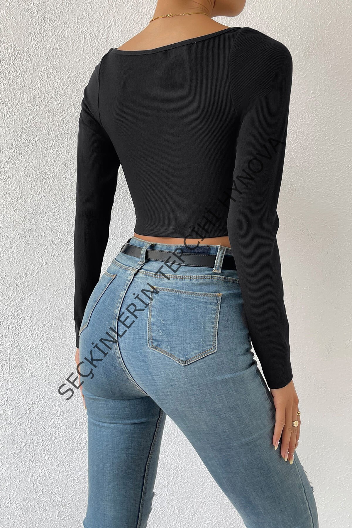 Kadın Siyah Uzun Kol Göğüs Dekolteli Şık Crop Top Bluz – Şık, Rahat ve Kolay Kombinlenebilir