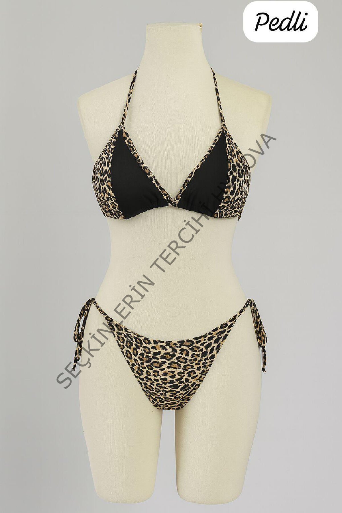- Zarif leopar deseniyle dikkat çeken bu bikini takımı, plaj