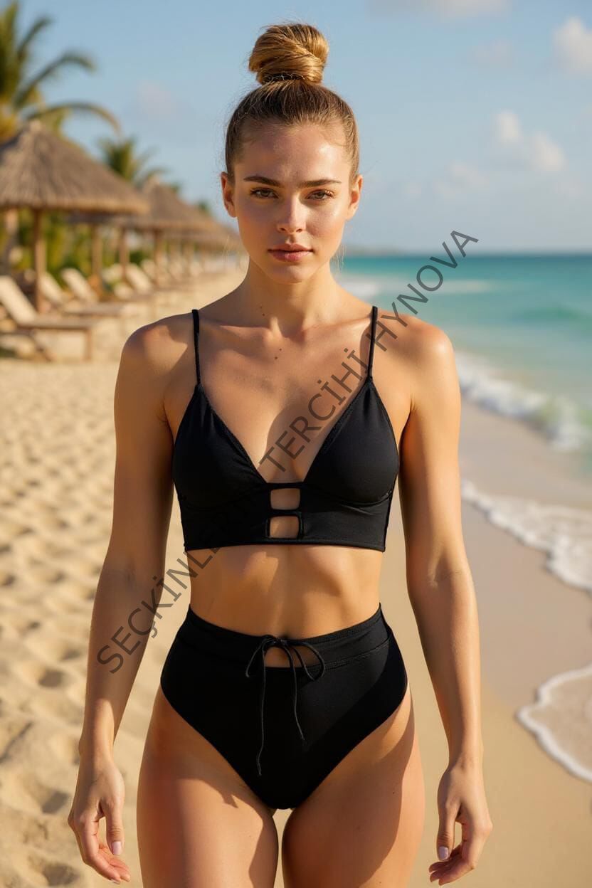 Kadın Siyah Yüksek Bel Özel Bikini Takımı – Modern, Konforlu ve Günlük Kombinlere Uygun