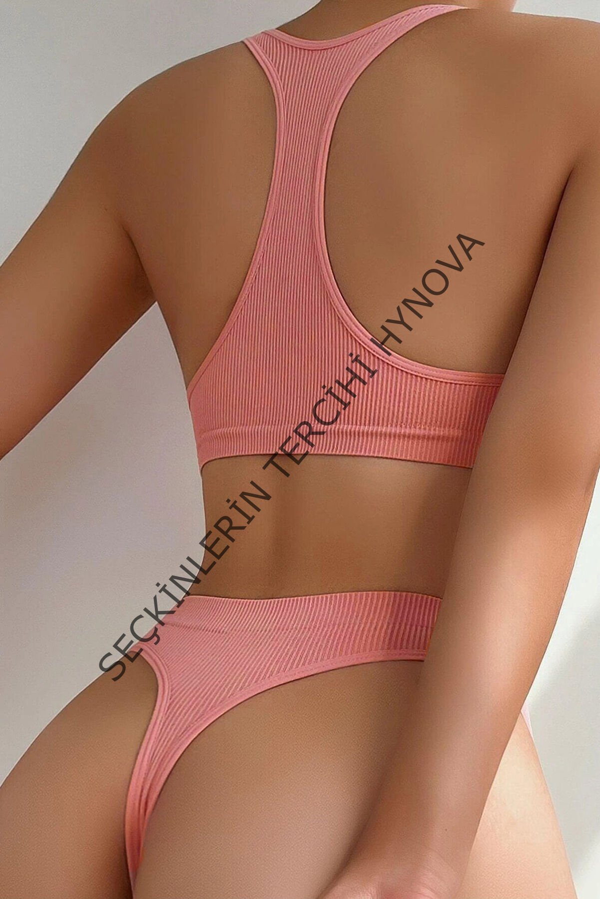 Kadın Somon Desteksiz Seamless Tangalı İç Çamaşır Takımı – Modern, Konforlu ve Günlük Kombinlere Uygun