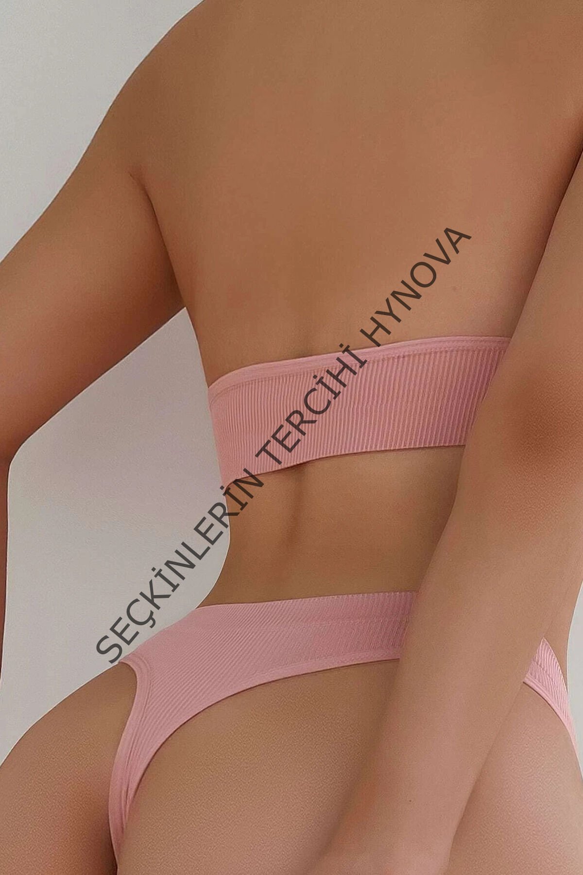 Kadın Somon Seamless Tanga Sütyen Takım – Modern, Konforlu ve Günlük Kombinlere Uygun