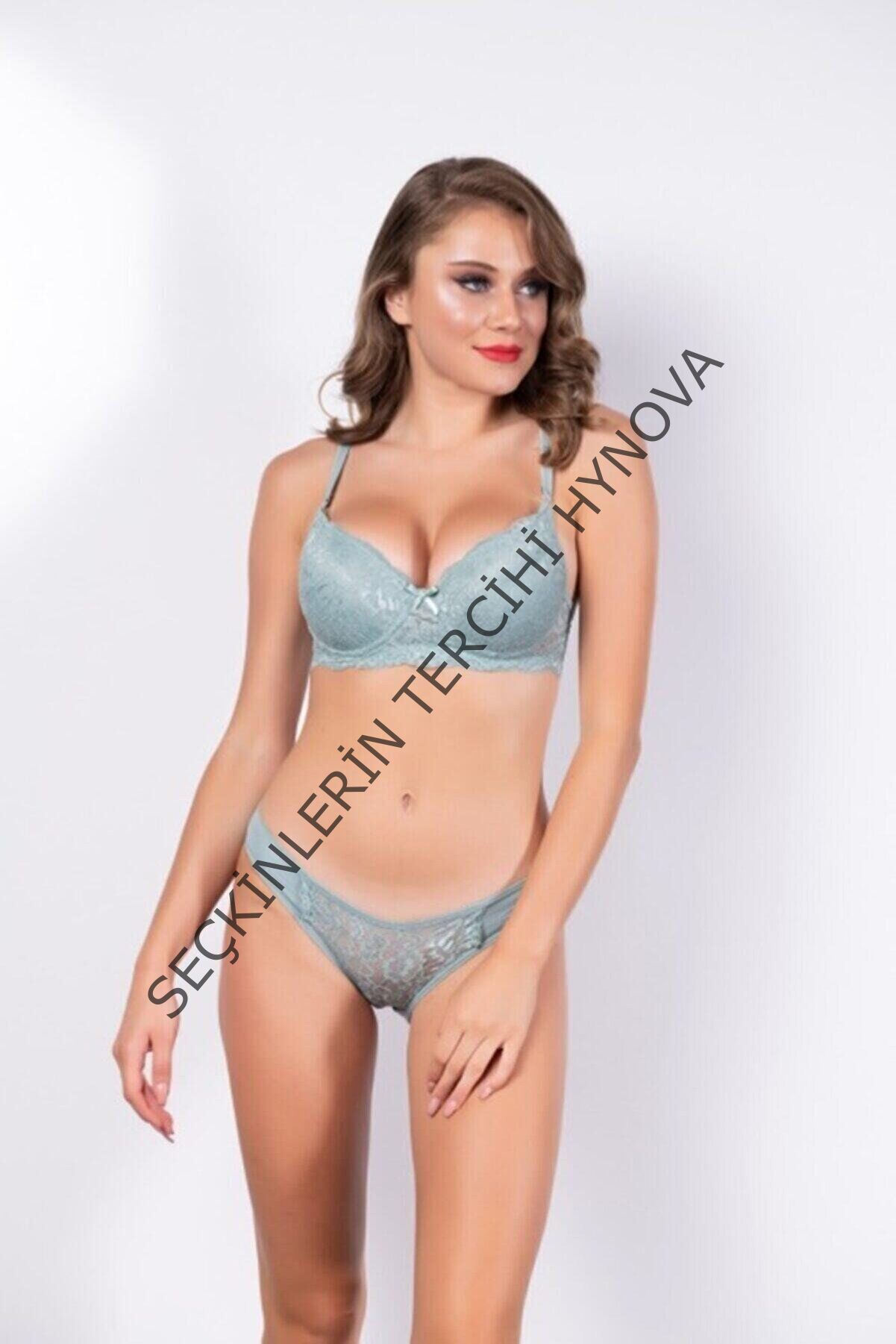 Kadın Su Yeşili Dantel Detaylı Sütyen Ve Külot Takım – Modern, Konforlu ve Günlük Kombinlere Uygun