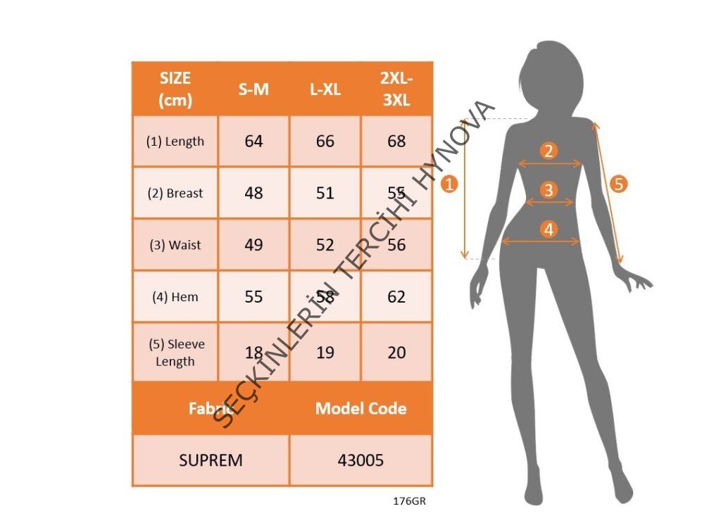 Modelin Ölçüleri: Boy:165, Kg:55, Göğüs:90, Bel:72, Kalça: 100