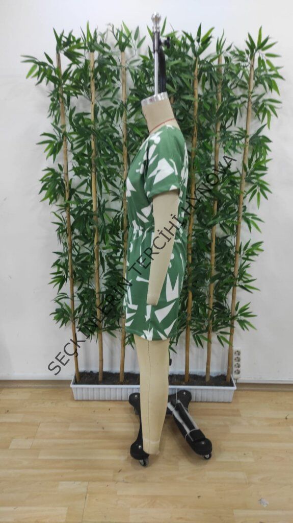Kadın Tek Omuzdan Açık Beli Lastikli Desenli Süprem Tulum