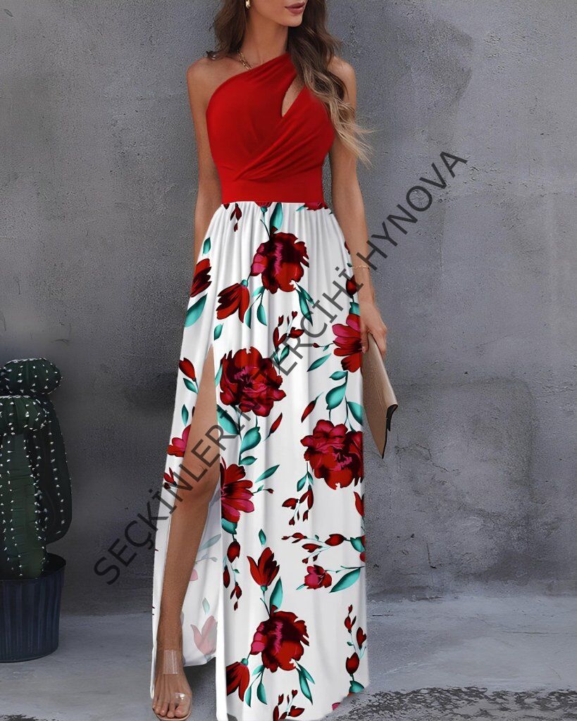 Kadın Tek Omuzdan Askılı Damla Detaylı üst Dalgıç Alt Süprem Maxi Elbise