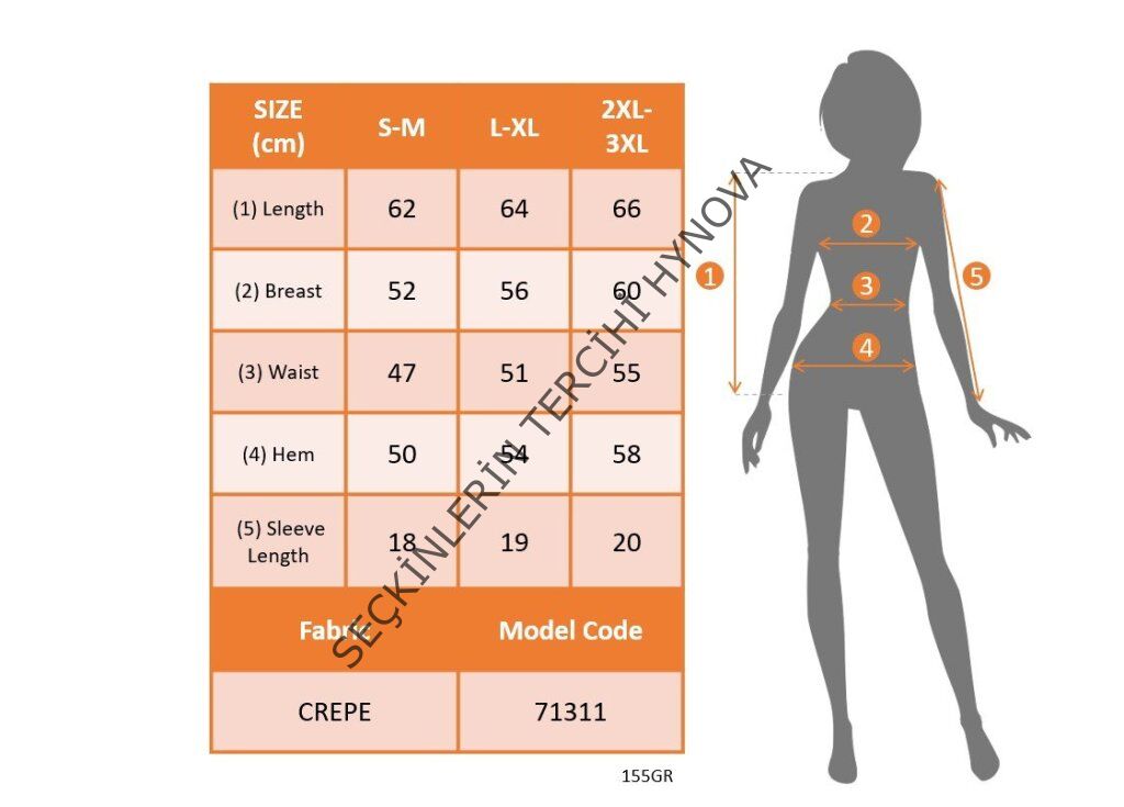 Modelin Ölçüleri: Boy:165, Kg:55, Göğüs:90, Bel:72, Kalça: 100