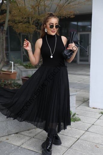 Kadın Triko Plise Ve Tül Detay Iki Parça Elbise
