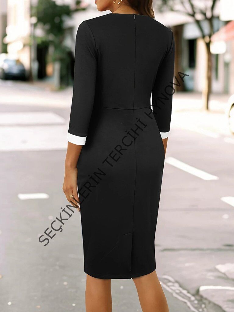 Kadın Truvakar Kol çift Renkli Düğmeli Kısa Ithal Krep Elbise