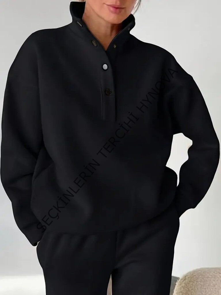 Kadın Uzun Kollu Balıkçı Dik Yakalı Düğmeli üç Iplik Bluz Ve Pantolon Ikili Takım