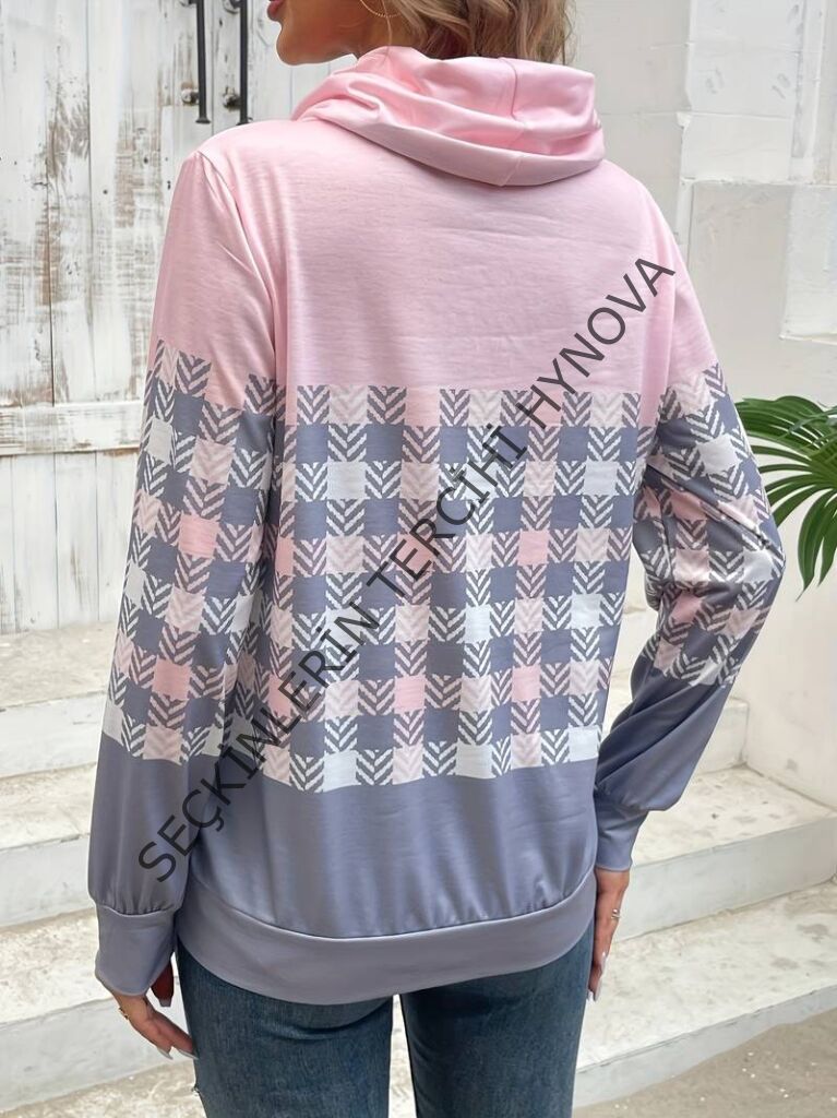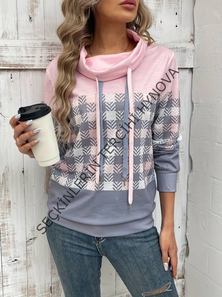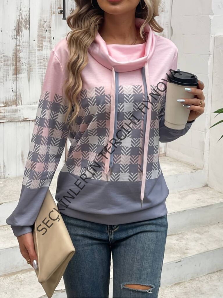 Kadın Uzun Kollu Balıkçı Yaka Bağcıklı Desenli şardonlu Dalgıç Bluz