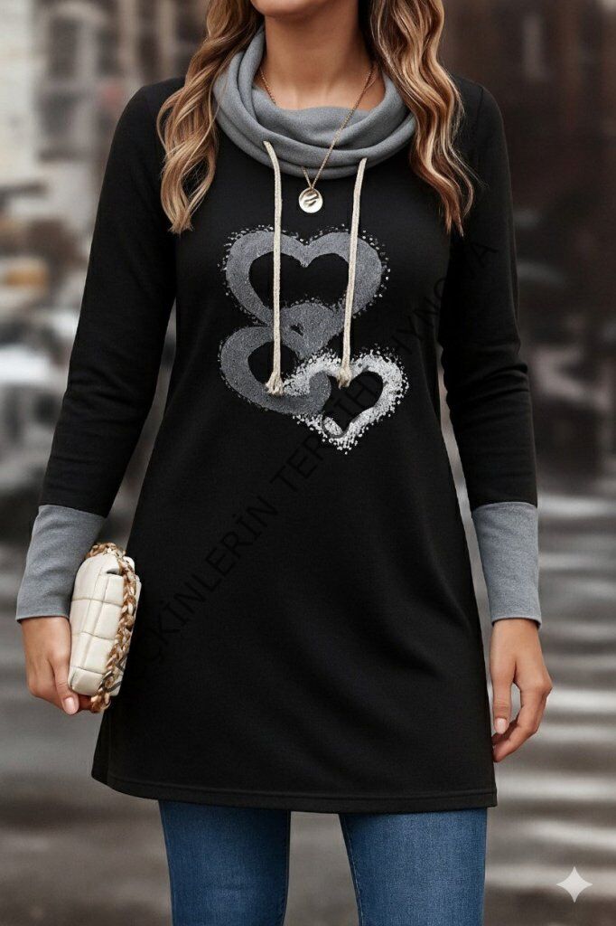 Kadın Uzun Kollu Balıkçı Yaka Bağcıklı Iki Iplik Elbise