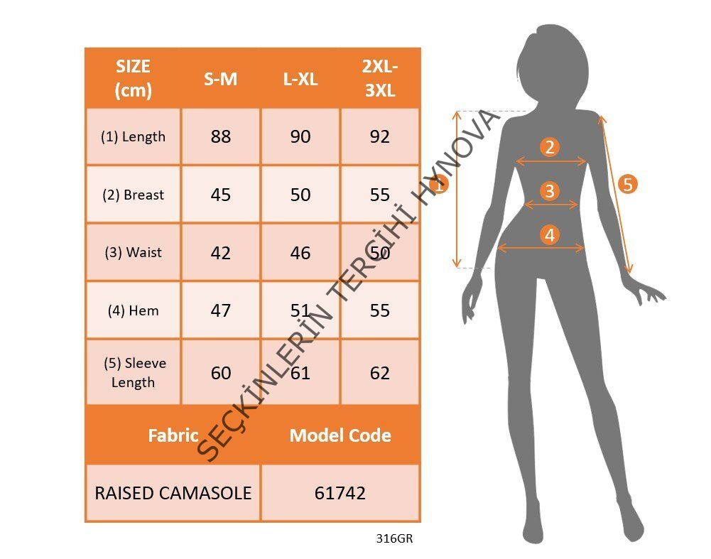 Modelin Ölçüleri: Boy:165, Kg:55, Göğüs:90, Bel:72, Kalça: 100