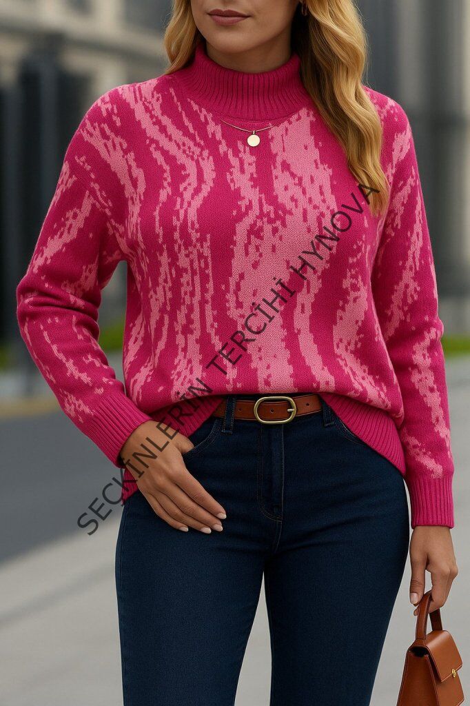 Kadın Uzun Kollu Balıkçı Yaka çok Renkli Triko Bluz