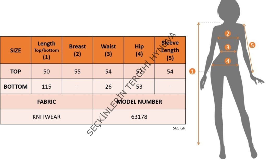 Modelin Ölçüleri: Boy:165, Kg:55, Göğüs:90, Bel:72, Kalça: 100