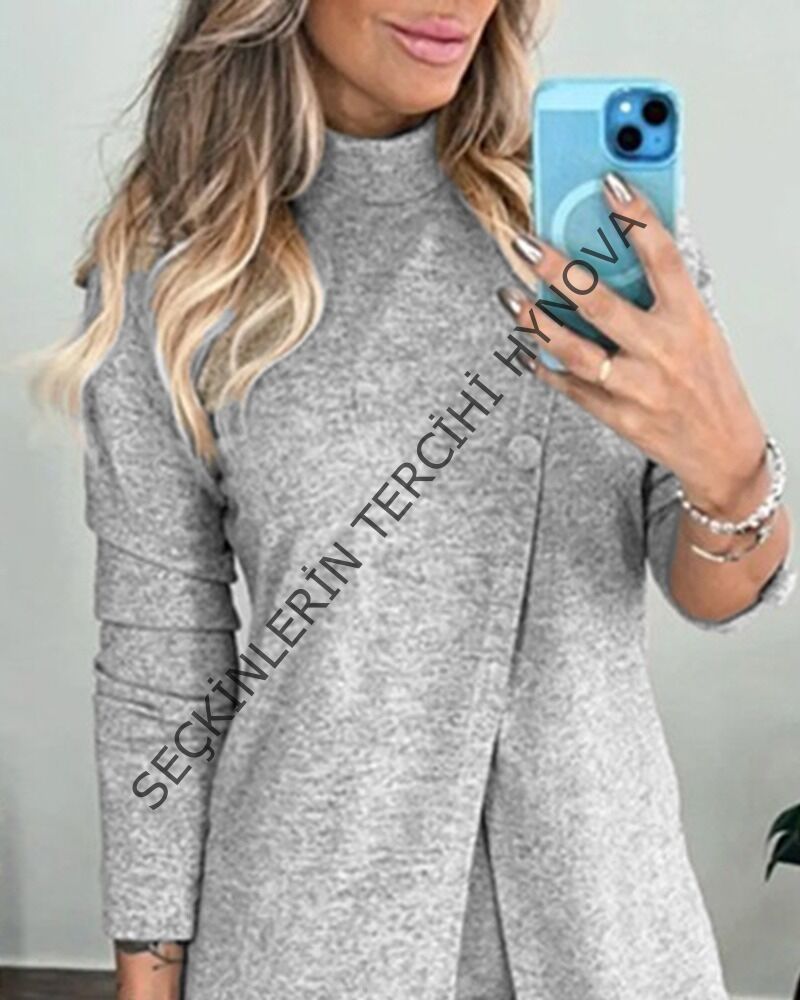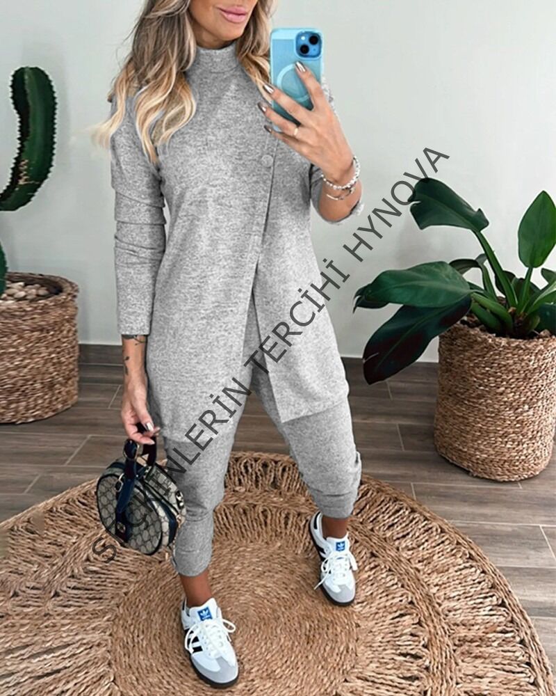 Kadın Uzun Kollu Balıkçı Yaka önden Düğmeli Bluz Ve Pantolon Yumoş Ikili Takım