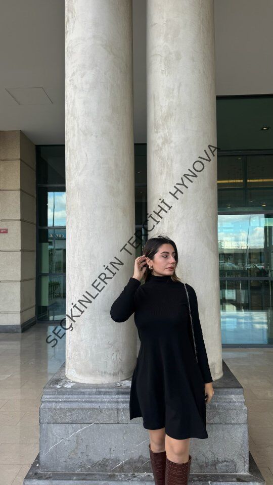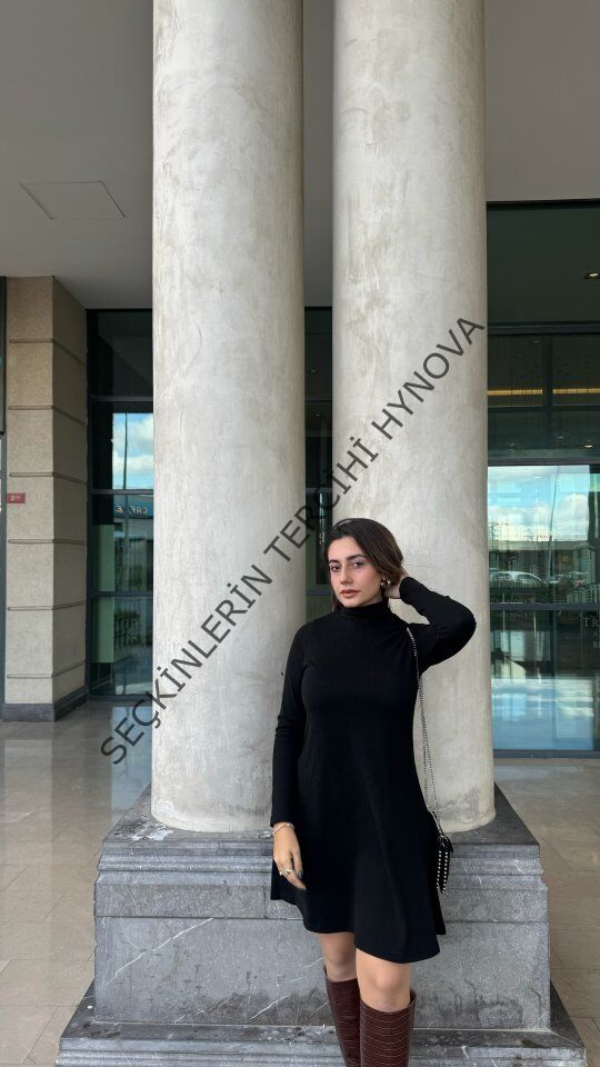 Kadın Uzun Kollu Balıkçı Yaka Salaş Kusa Akrilik Elbise