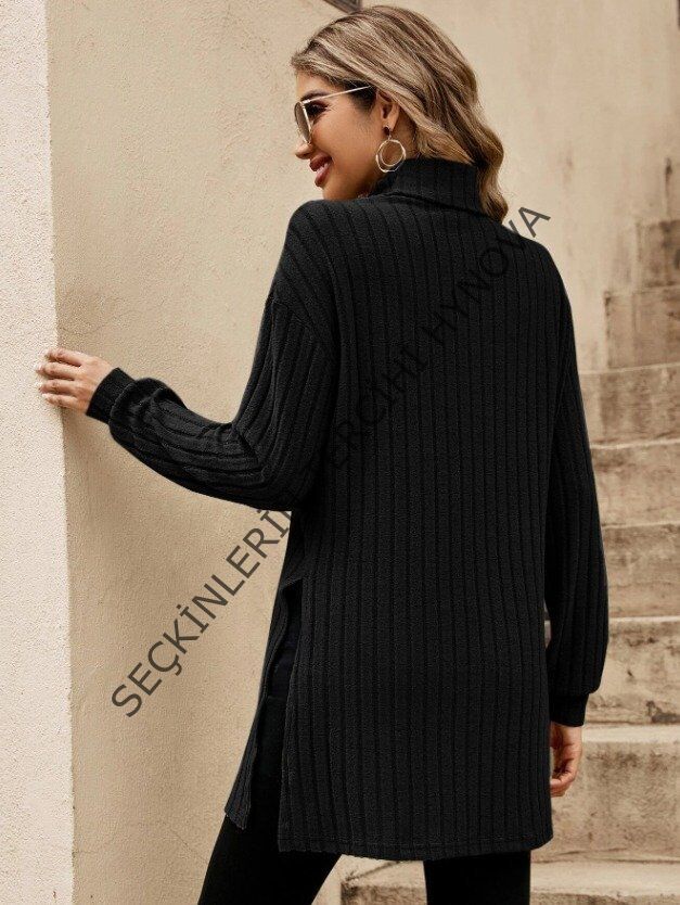 Kadın Uzun Kollu Balıkçı Yakayanlar Yırtmaçlı Kaşkorse Bluz