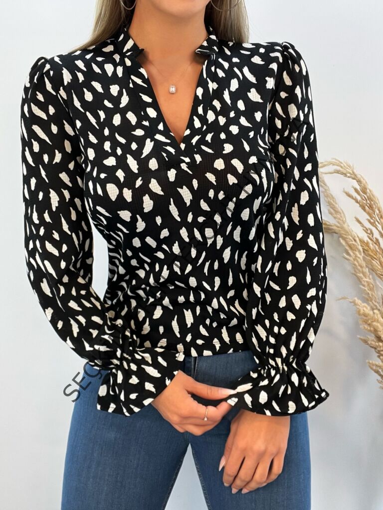 Kadın Uzun Kollu Baskılı Hakim Yaka Helen Kumaş Bluz