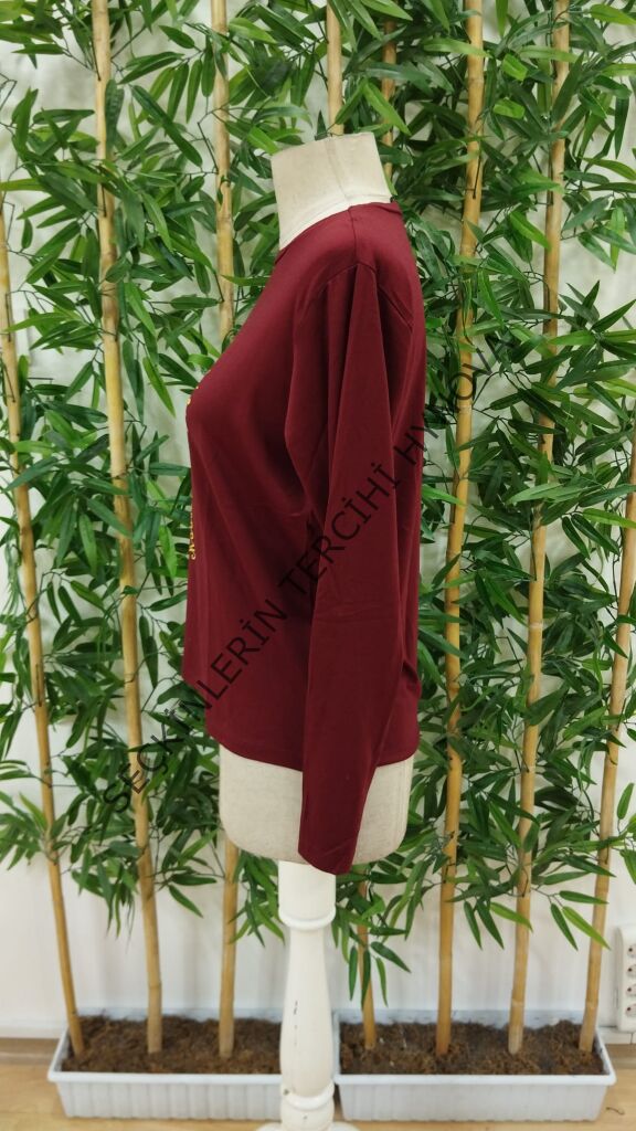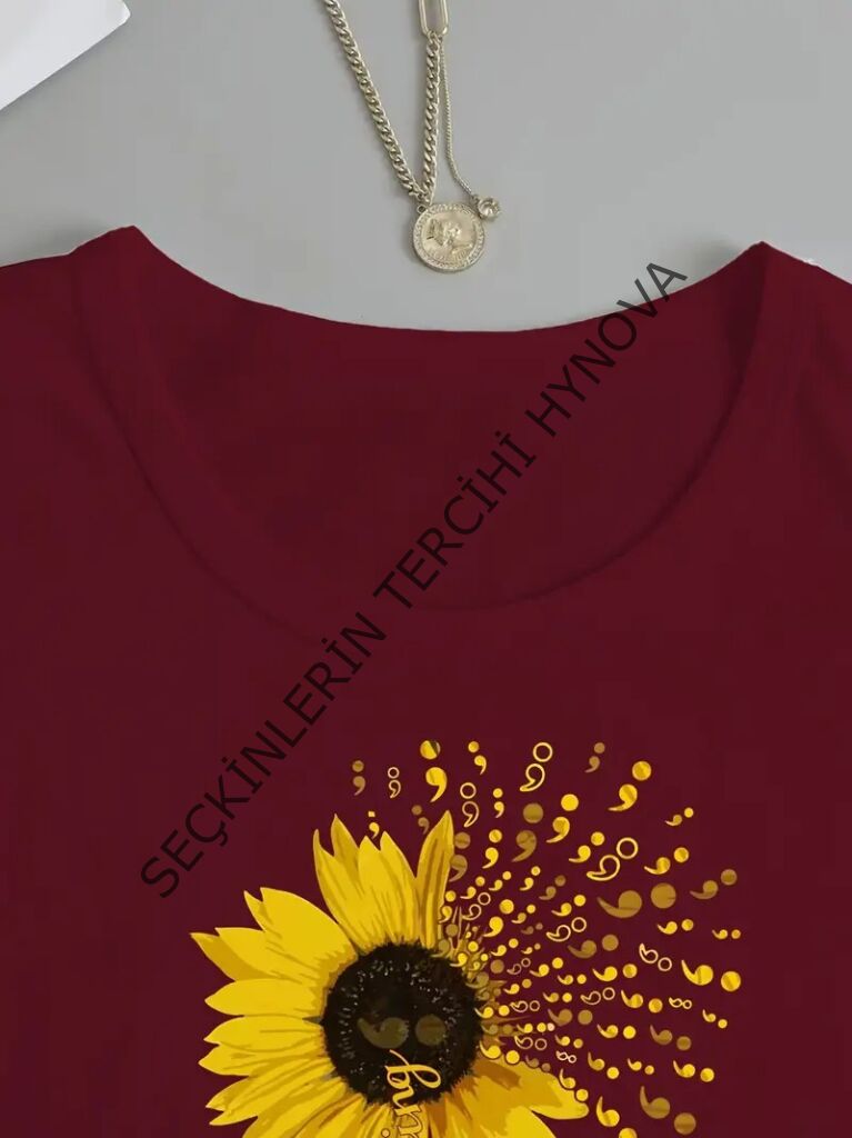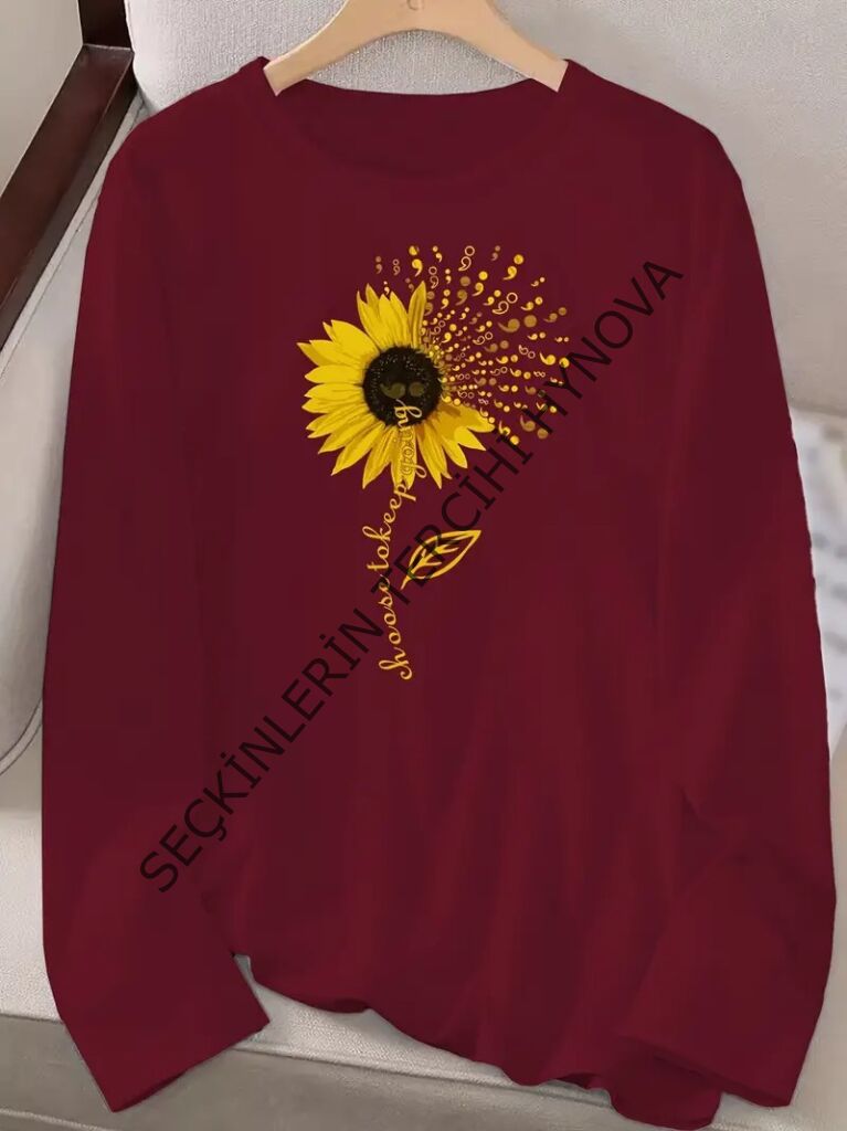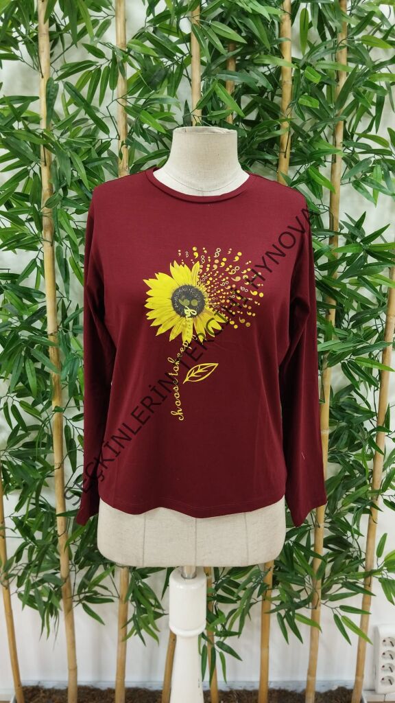 Kadın Uzun Kollu Bisiklet Yaka Ayçiçeği Desenli Viskon Bluz