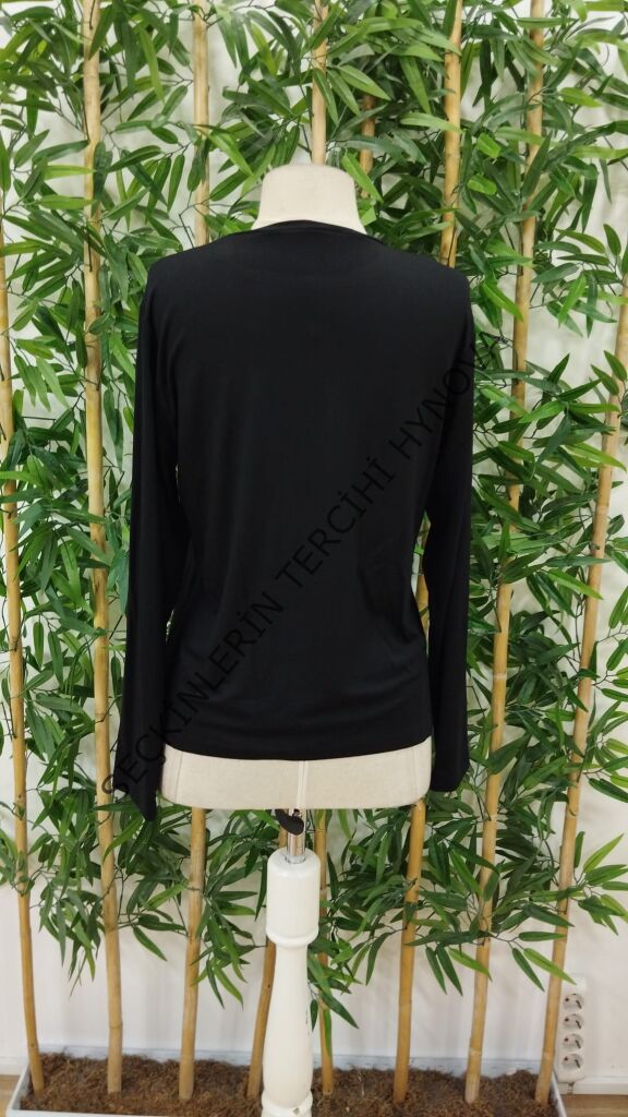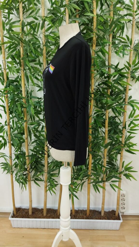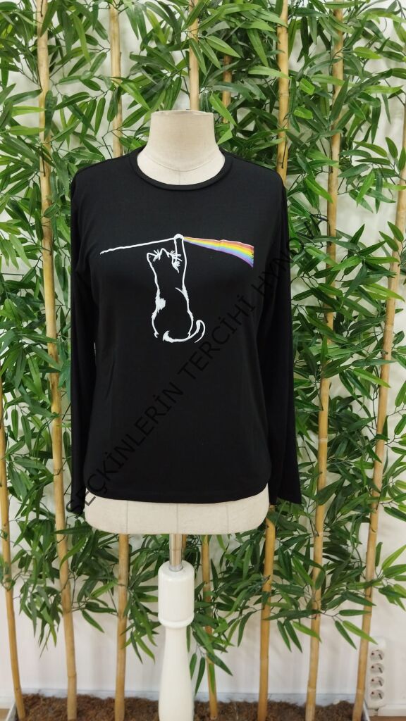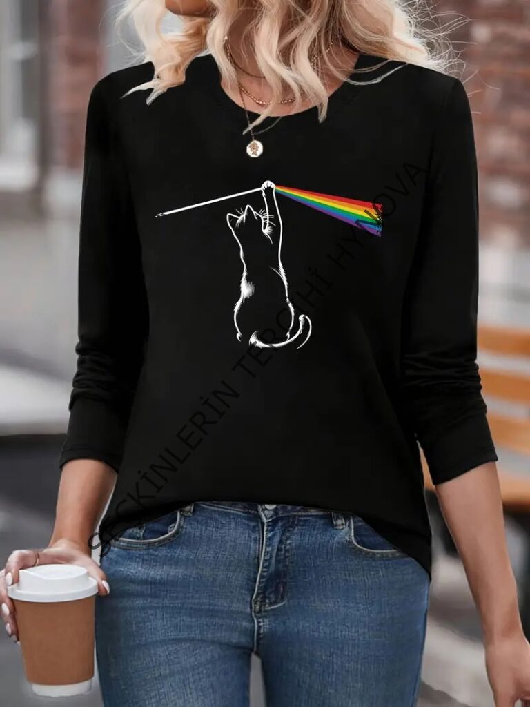 Kadın Uzun Kollu Bisiklet Yaka Baskılı Iki Iplik Bluz