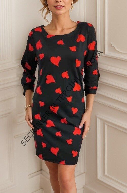 Kadın Uzun Kollu Bisiklet Yaka Dalgıç Mini Boy Elbise