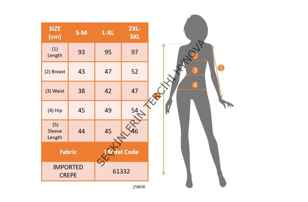 Modelin Ölçüleri: Boy:165, Kg:55, Göğüs:90, Bel:72, Kalça: 100