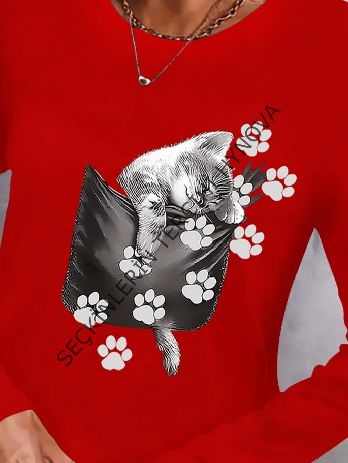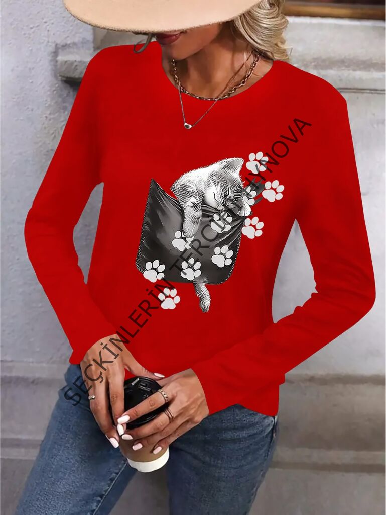 Kadın Uzun Kollu Bisiklet Yaka Desenli Viskon Bluz