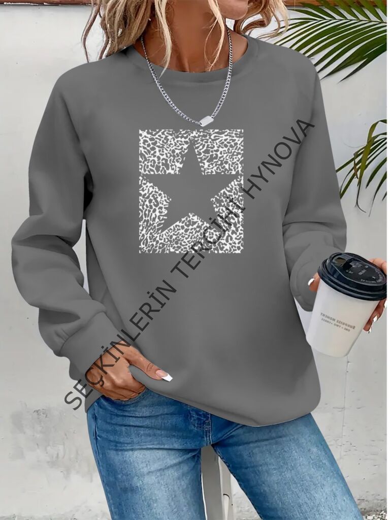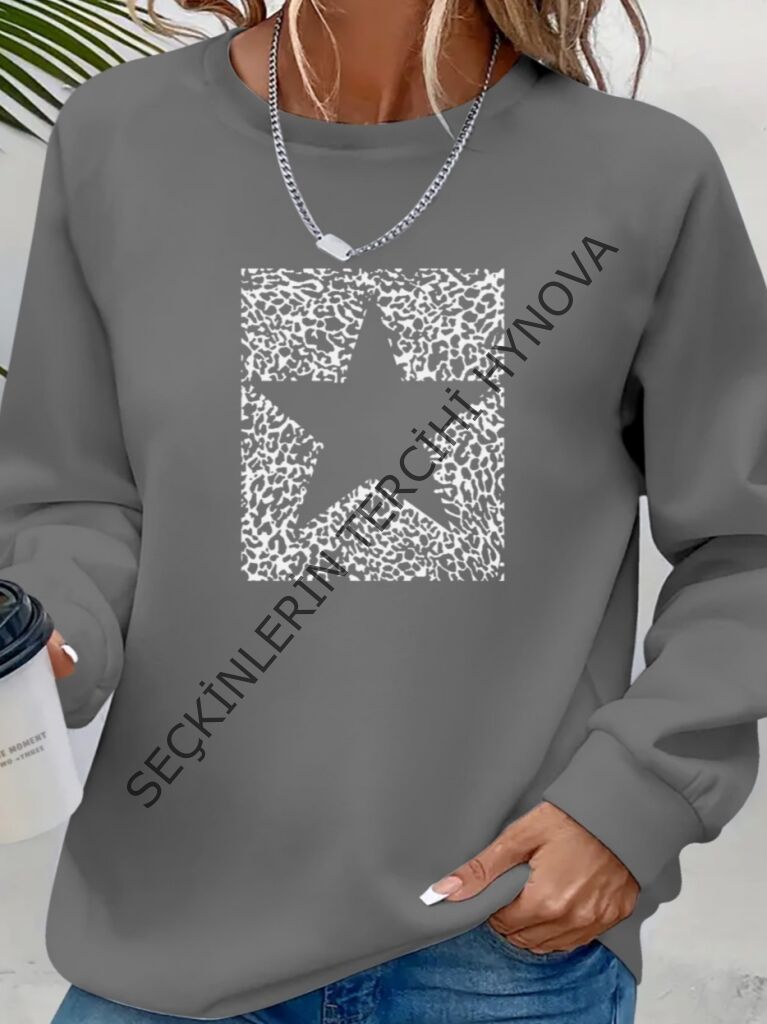 Kadın Uzun Kollu Bisiklet Yaka Desenli Viskon Iki Iplik Bluz
