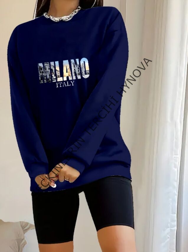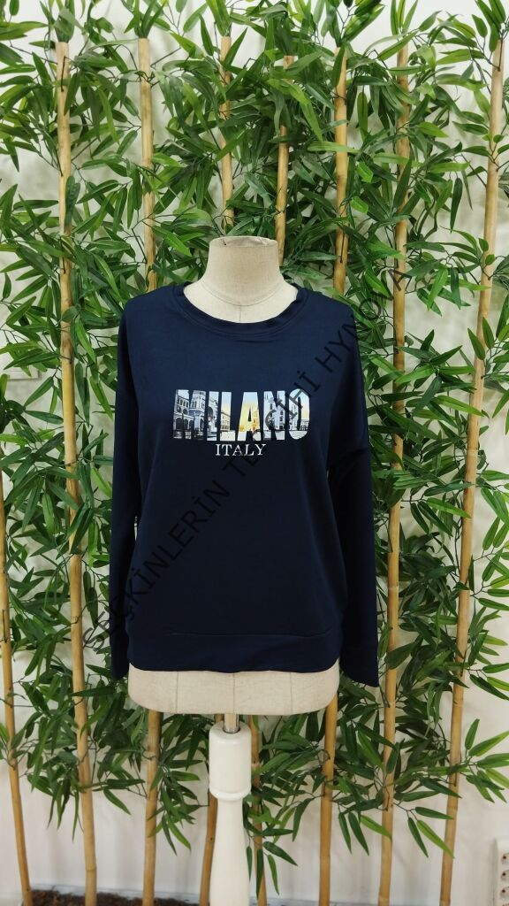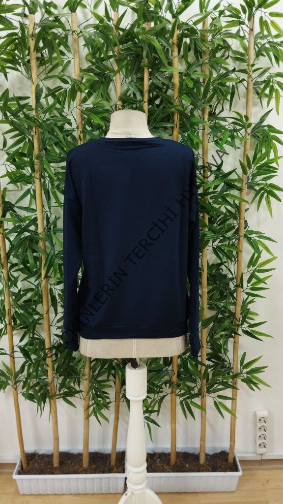 Kadın Uzun Kollu Bisiklet Yaka Desenli Viskon Iki Iplik Bluz