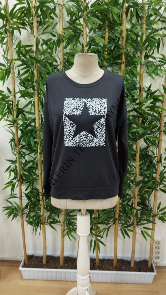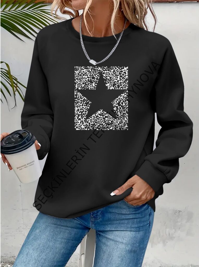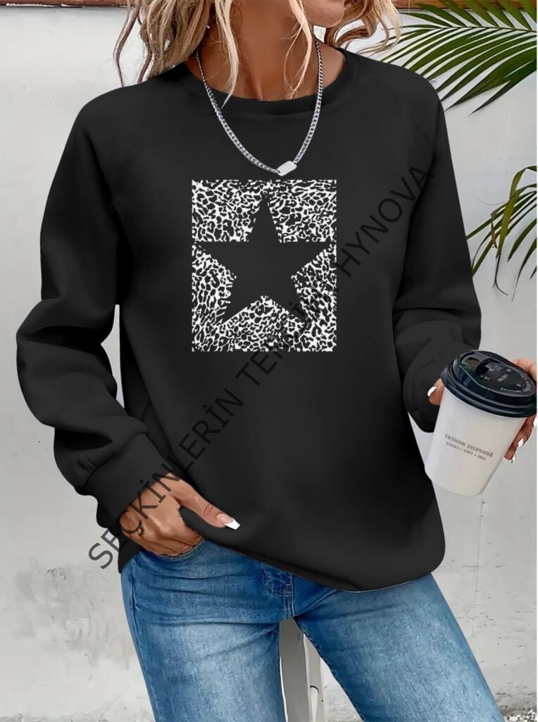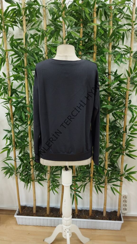Kadın Uzun Kollu Bisiklet Yaka Desenli Viskon Iki Iplik Bluz