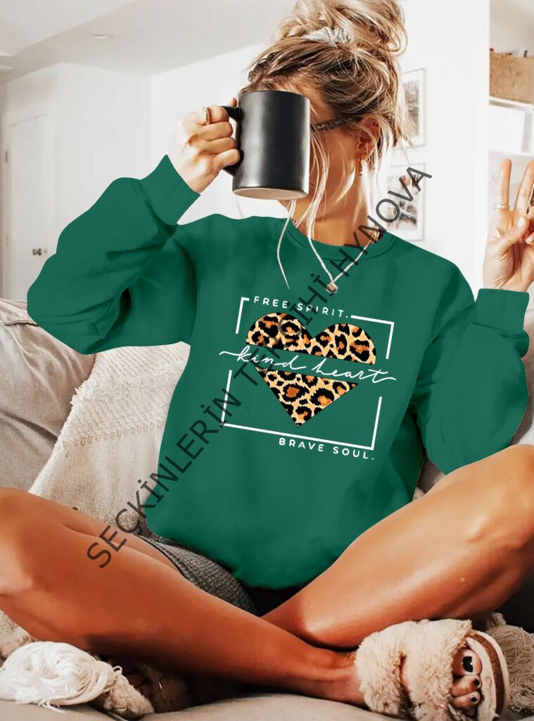 Kadın Uzun Kollu Bisiklet Yaka Desenli Viskon Iki Iplik Bluz