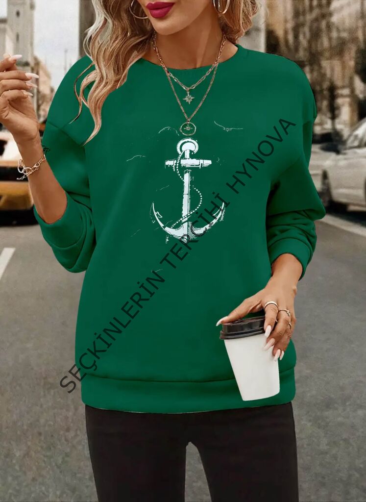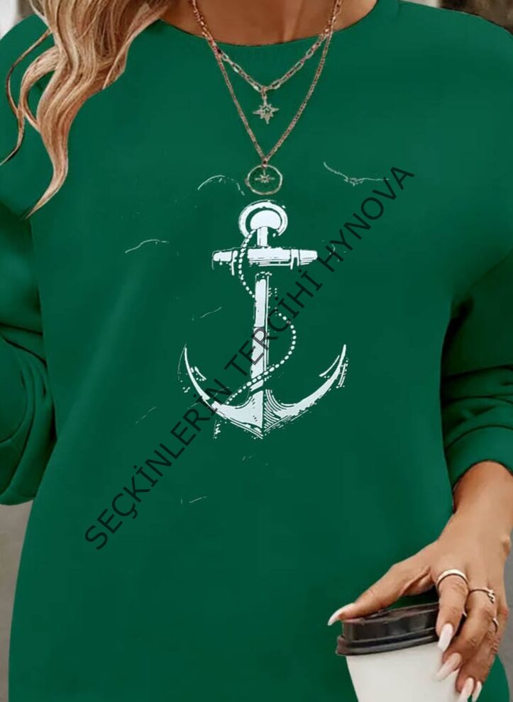 Kadın Uzun Kollu Bisiklet Yaka Desenli Viskon Iki Iplik Bluz