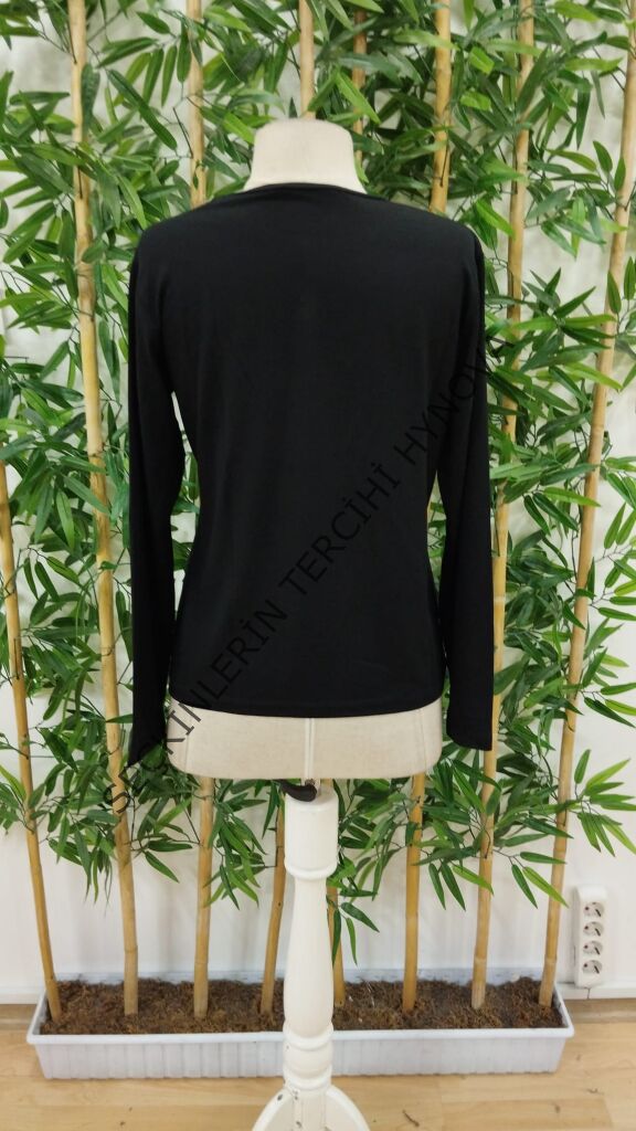 Kadın Uzun Kollu Bisiklet Yaka Gülümseyen Surat Desenli Viskon Bluz