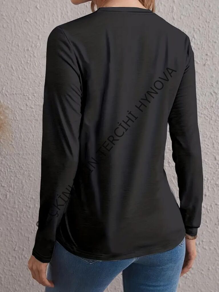 Kadın Uzun Kollu Bisiklet Yaka Kalp Desenli Bluz