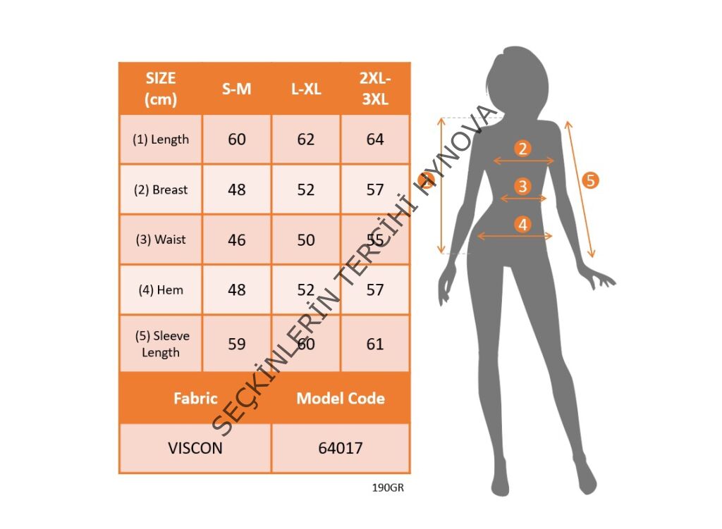 Modelin Ölçüleri: Boy:165, Kg:55, Göğüs:90, Bel:72, Kalça: 100