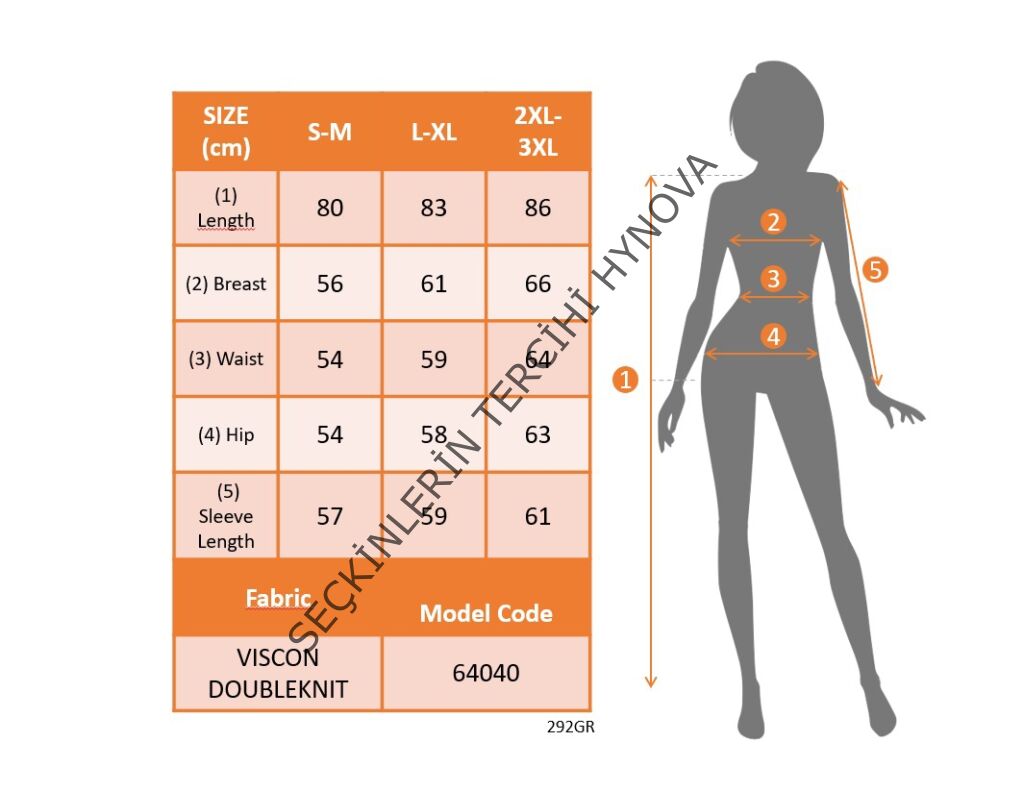 Modelin Ölçüleri: Boy:165, Kg:55, Göğüs:90, Bel:72, Kalça: 100
