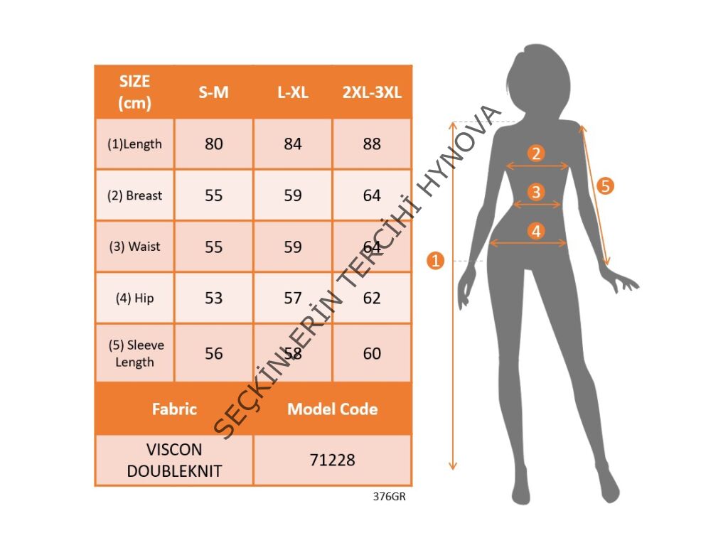 Modelin Ölçüleri: Boy:165, Kg:55, Göğüs:90, Bel:72, Kalça: 100