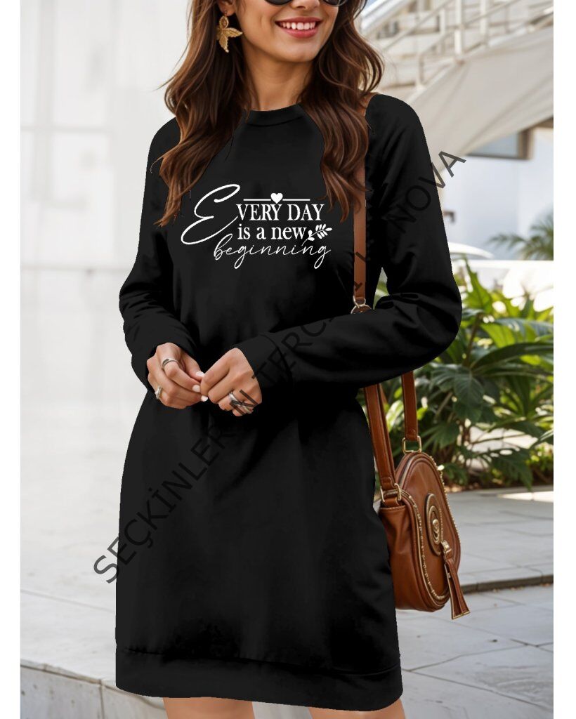Kadın Uzun Kollu Bisiklet Yaka Kısa Viskon Iki Iplik Elbise