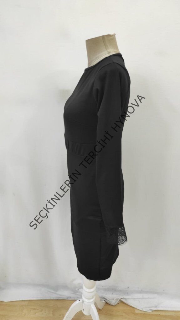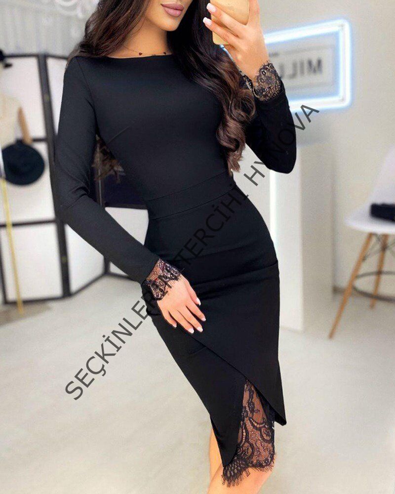 Kadın Uzun Kollu Bisiklet Yaka önden Dantel Ve Yırtmaç Detaylı Dalgıç Elbise