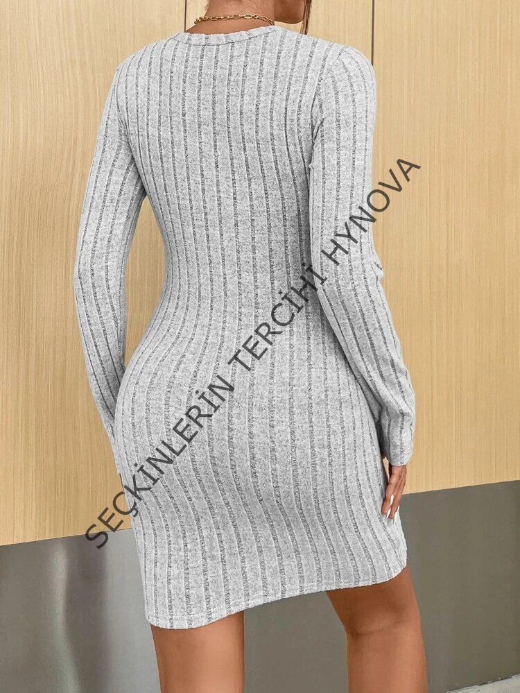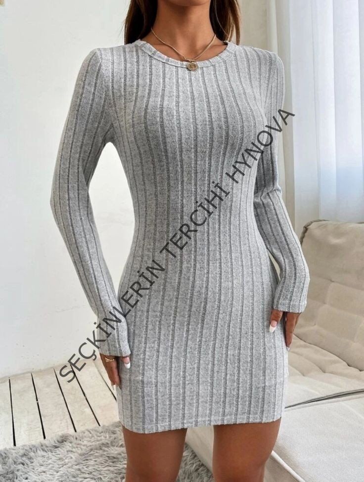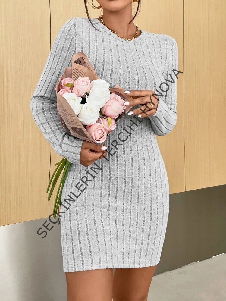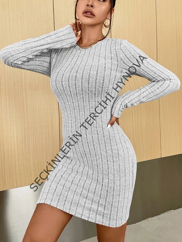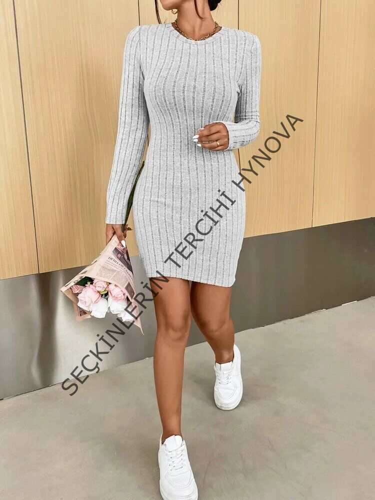 Kadın Uzun Kollu Bisiklet Yaka şardonlu Kalın Fitilli Kaşkorse Mini Boy Elbise
