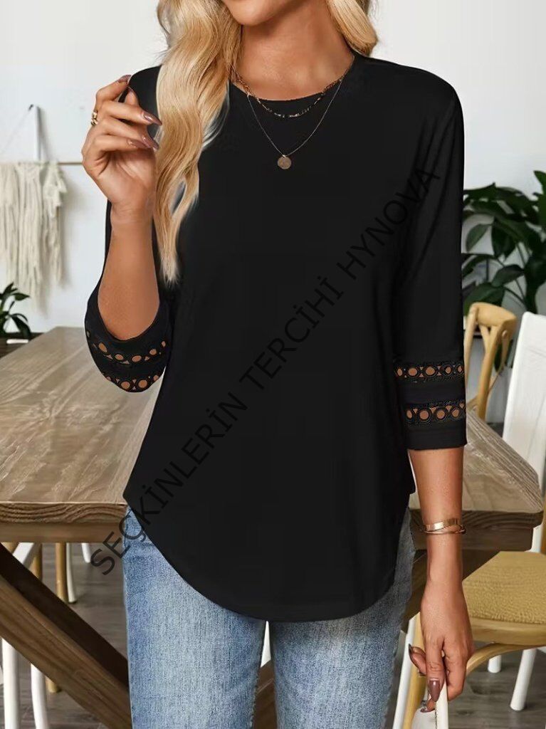 Kadın Uzun Kollu Bisiklet Yaka Truvakar Kollu Viskon Bluz