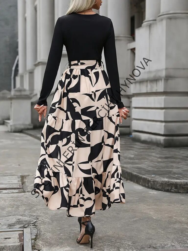 Kadın Uzun Kollu Bisiklet Yaka Uzun Elbise