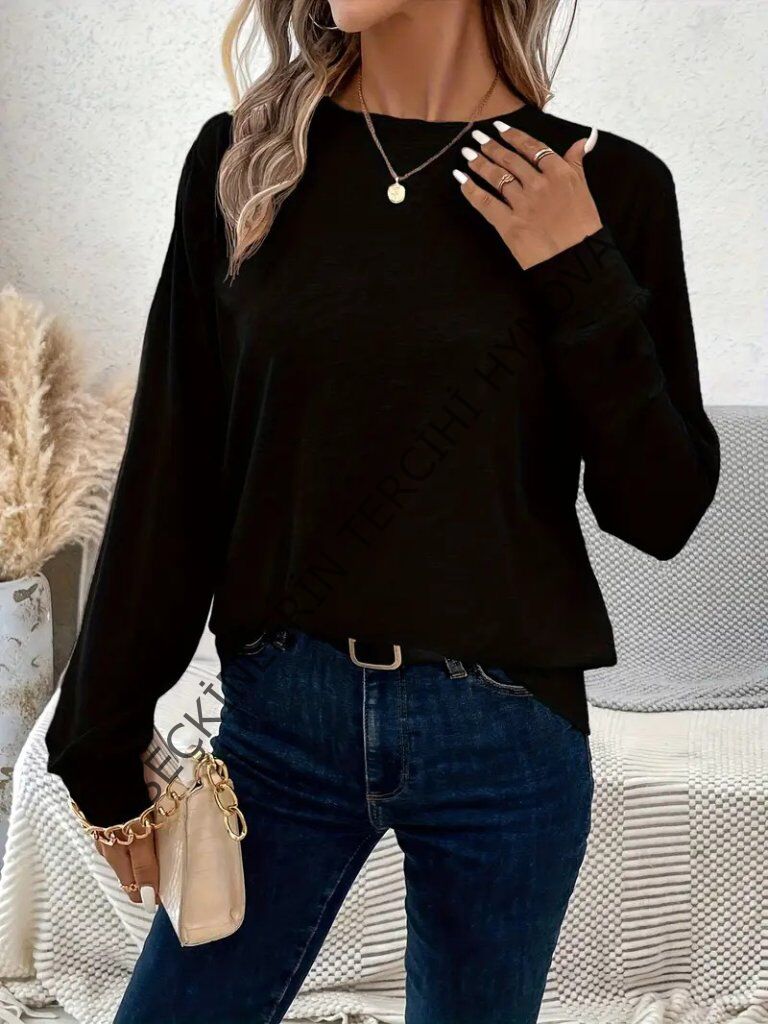 Kadın Uzun Kollu Bisiklet Yaka Viskon Bluz