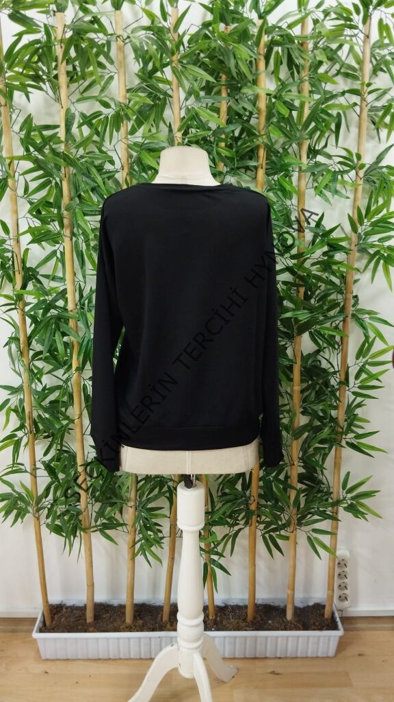 Kadın Uzun Kollu Bisiklet Yaka Viskon Iki Iplik Bluz