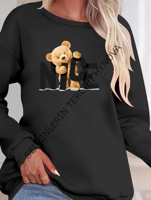 Kadın Uzun Kollu Bisiklet Yaka Viskon Iki Iplik Bluz