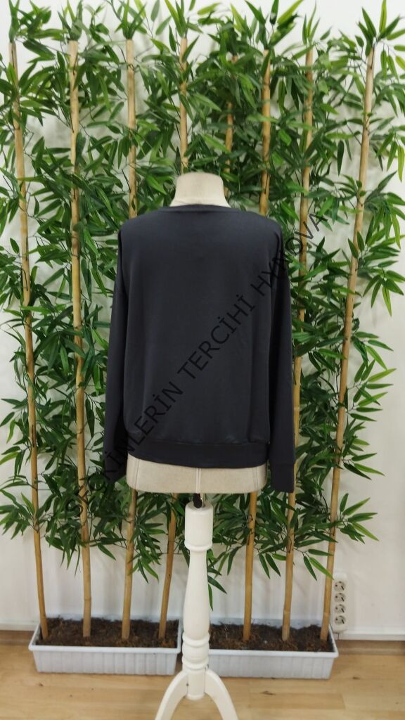 Kadın Uzun Kollu Bisiklet Yaka Viskon Iki Iplik Bluz