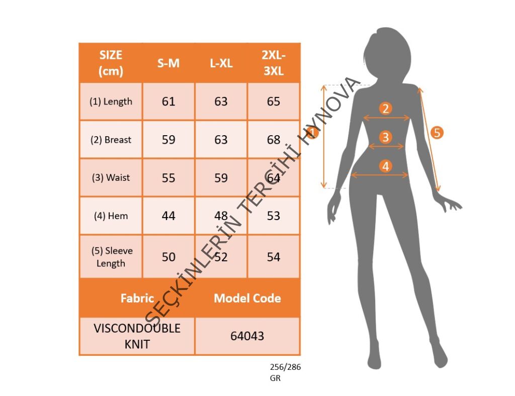 Modelin Ölçüleri: Boy:165, Kg:55, Göğüs:90, Bel:72, Kalça: 100